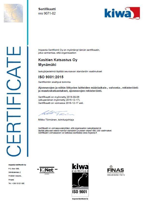 Toimiston yleinen sähköpostiosoite on toimisto@kasitienkatsastus.fi